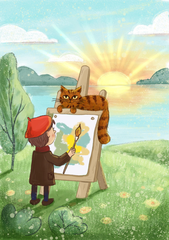 Достал он холст, кисточки, а где же краски? Те самые, что подарил ему незнакомый волшебник. Он забыл их! Забыл дома! Как теперь писать картину? А солнце уже показало свой первый луч. И озеро преобразилось. Стало волшебным! Сейчас самое время рисовать!