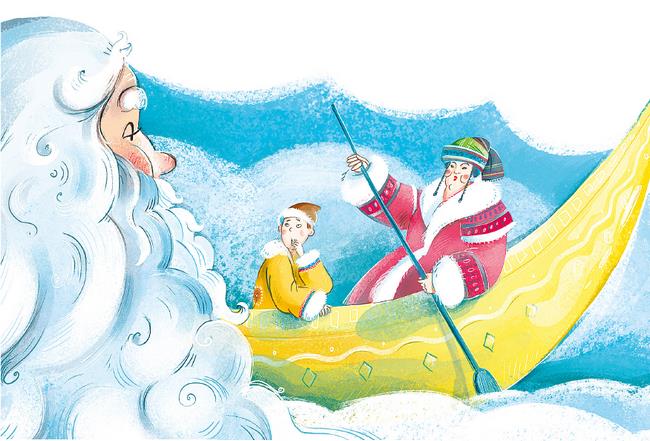 Он дотронулся до бороды, и в то же мгновение перед ним появилась сверкающая бледным лунным светом лодка-месяц.