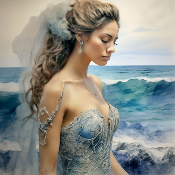 Той, кто с морем однажды повенчана,На земле бренной больше нет места.Задумчива, прекрасна, застенчива,В пенном платье морская невеста.Лёгкий бриз- свидетель печальныйОбряда, связавшего с морем.Вместо песни красивой венчальной,Завывание ветра и шум прибоя.В платье лёгком из пены солёной,По песку босыми ногами,В море синее навеки влюбленная,Попрощайся с земными мечтами.Отпусти всё, что раньше тревожило,Пусть уносит с брызгами ветер.Море счастье навеки умножило,Путь теперь твой ясен и светел.