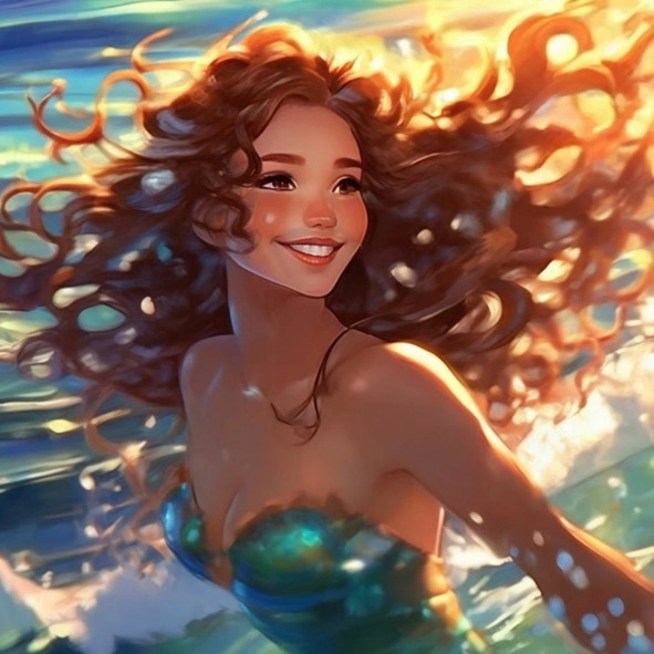 Локоны света каштанаПолыхают в солнца лучах.Русалка по утру раноКупалась в солёных волнах.Ветер играл волосами,И пена ласкала её,Хрустальными голосамиПодруги пели про бытиё.На кожу легли капли соли,Ракушки в её волосах.Ундине счастье на волеКупаться в высоких волнах.Резвилась русалка, играла,И шквалы ей нипочём,То в бездну морскую ныряла,То брызгала в небо дождём.На гребне волны восседала,И быстро ныряла на дно.Под толщей воды исчезала,Где море так мрачно, черно.Русалка пела о счастье,О ночи, луне и волнах.С морем бескрайним согласиеВ восторженных было очах.Но жаркий день разгорался,И деву бездна звала,С чайками она попрощалась,И глубоко под воду ушла.