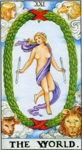 Карта Таро «Мир» (21-й Старший Аркан) символизирует завершение важного этапа, достижение цели, внутреннюю гармонию и ощущение целостности. Это карта триумфа, успеха и подведения итогов, когда человек может насладиться плодами своих трудов и перейти к новому жизненному циклу.