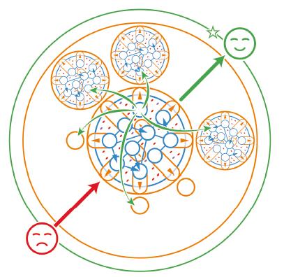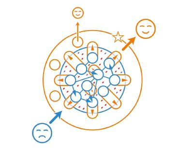 Сила этого контура определяется простым соотношением работающих правил и процессов ко всем правилам и процессам организации. Чтобы определить его силу, задайте себе простой вопрос: если взять за 100% все правила, регламенты и процессы в вашей организации, то сколько процентов из них реально работает? То есть сотрудники следуют этим правилам и ожидают того же от коллег, а если видят, что правило не действует или наносит вред, – инициируют его изменение? Обычно те, кому мы как консультанты задаем этот вопрос, сильно задумываются, а потом неуверенно называют цифры, близкие к 10–50%. Это объясняется тем, что попытки «внедрить процессы» есть и на уровне культуры Племени и Власти, просто там это приводит к созданию либо ритуальных правил, которые сами должны работать, на фиолетовом уровне, либо правил, поддерживаемых силовыми методами, которые быстро перестают работать, как только лидер о них забывает (а он всегда о них рано или поздно забывает).