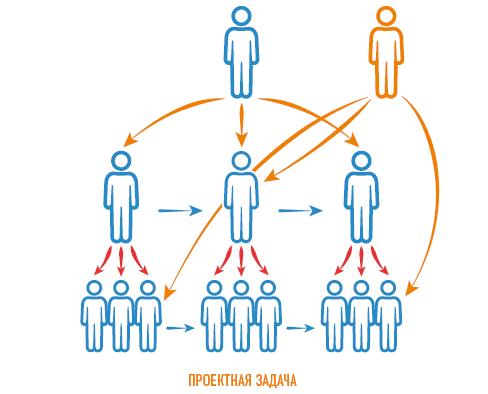 Появляется менеджер проекта, который формирует кросс-функциональные команды из сотрудников разных подразделений, организует их работу, управляет задачами, сроками и ресурсами проекта. И в сильной оранжевой организации проект начинает реализовываться командой! Если попробовать внедрить проектный менеджмент, например в организации с культурой власти, то без активного вовлечения лидера проект будет буксовать: члены команды всегда будут ставить в приоритет оперативную и операционную деятельность, откладывая реализацию проекта на завтра, которое, разумеется, никогда не наступает. Всегда наступает сегодня.