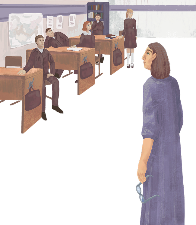 Алла Дмитриевна прикрыла двери за ушедшими ребятами. Игнатов и Панова подошли к ее столу. Она указала им рукой на первую парту. Панова демонстративно села на другой ряд. Учительница поправила стопку тетрадей: