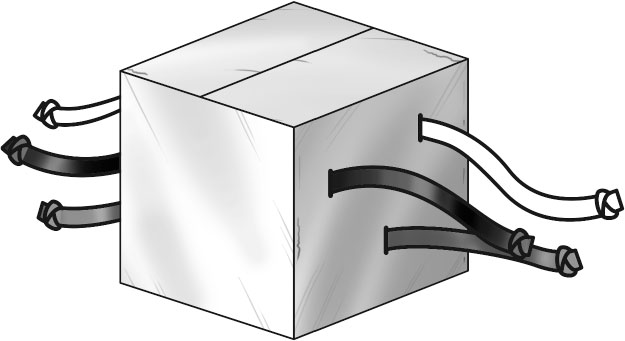 Возьмите любую коробку. Сделайте несколько прорезей с противоположных торцов коробки. Проденьте насквозь разноцветные не очень широкие ленты длиной в два раза большей, чем коробка. На концах лент завяжите узлы.