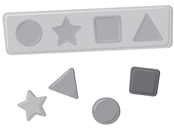 Примерно к двум годам ребёнок уже не пробует, подходит ли простая фигура к вкладке или нет, а методом зрительного соотнесения подносит её к нужной нише. Он уже не пытается засунуть круг в треугольную вкладку.