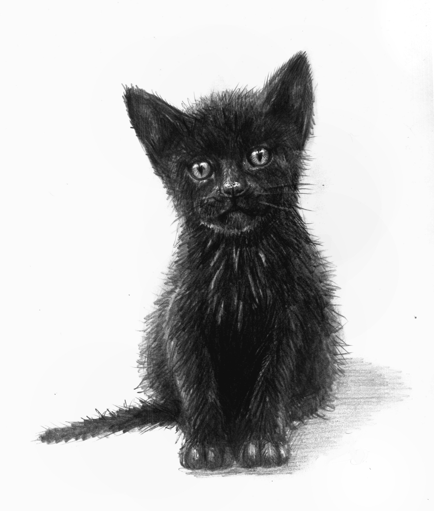 – Вилли! Посмотри на картину! Котенок у тебя нарисован в углу. Просто там темно, и он черный, плохо видно. Ты же рассказывал, как любишь кота, что живет у Бернадетти. Забыла его имя.