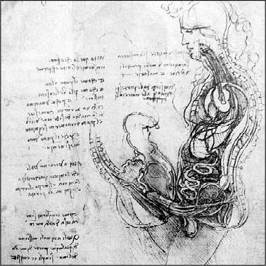 Мужчина прорисован в деталях: его пенис связан с позвоночником, а вместо женщины – набросок матки, соединенной с молочной железой