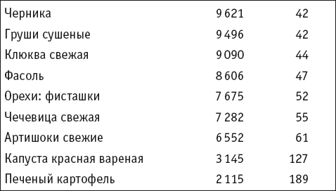Источники показателей ORAC: High Antioxidant Foods//http:// www.oracvalues.com; United States Department of Agriculture// http://www.usda.gov и др.