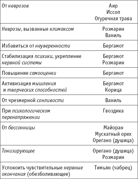 Нервная система прекрасно поддается успокоению лекарственными травами. Кто из нас не знает о валериане или мятном чае? Пряность мята, освежающая дыхание, едва ли не самая востребованная у современного делового человека! Пообедав на бегу, мы вытягиваем из карманов припасенную мятную конфетку или жевательную резинку. Одно мгновение, и мятный аромат наполняет рот и горло, и вместе с тем нервная система расслабляется – таково действие перечной мяты. Другие полезные пряности вы найдете в таблице на стр. 36–37.
