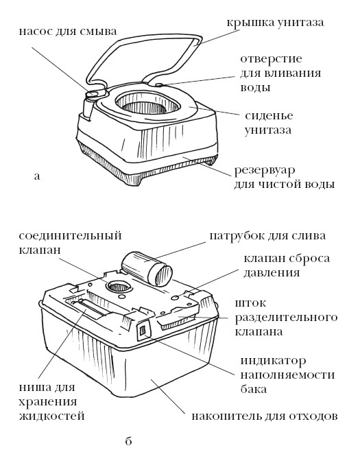 Рисунок 1. Принципиальные разновидности биотуалетов: а) кассетный; б) разъемный