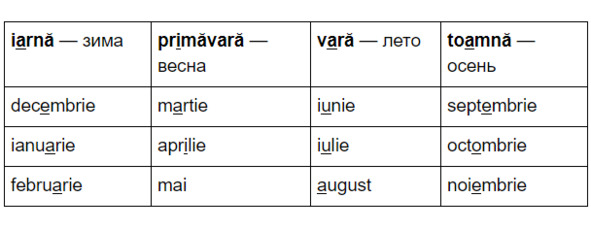 o zi/zile – день/дни o lună/luni – месяц/месяцы un anotimp/anotimpuri – время года/времена года