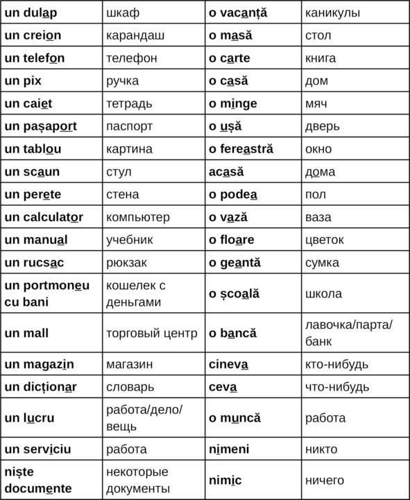Acolo este un dicționar (словарь). 13) ___ (pe/între/la) dicționar este un pix. Aici este o geantă (сумка). 14) ___ (la/cu/în) geantă sunt o carte, un caiet și un pașaport.