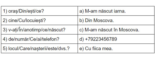 Unde locuiți? – Locuiesc în orașul Moscova.