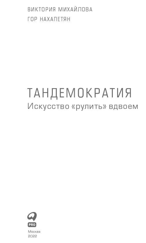 Общий интерес к теме позволил нам создать и собственный творческий тандем, плод которого вы держите сейчас в руках. Совместный рабочий процесс помог нам изнутри увидеть весь круг проблем: предпосылки возникновения партнерств, аспекты отношений между участниками, стадии развития (зарождение, становление, рост, апогей, переход в кризисную фазу и, наконец, распад) – и найти их решение. Исходя из выявленных закономерностей, определяющих успех тандема, и опираясь на конкретные примеры, мы расскажем вам об особенностях распределения функций между участниками, механизмах продуктивного взаимодействия в рядовых ситуациях и в периоды особых вызовов. Книга поможет вам познакомиться с различными сценариями работы здорового тандема не только в организационных структурах, но и в других стабильных группах, таких как семья или команда.