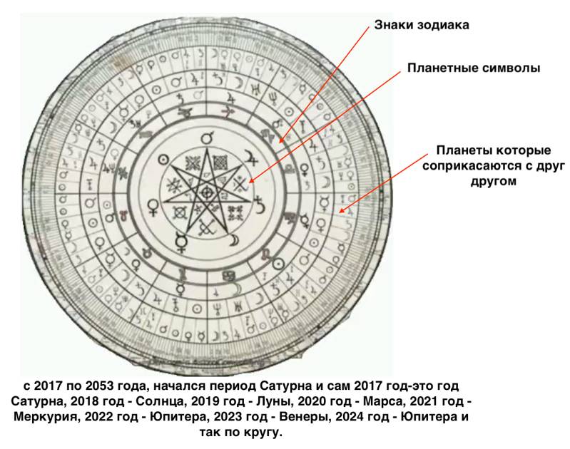 Каждым часом в сутках управляет своя планета. Началом дня в астрологии считается момент восхода Солнца, но первым часом всегда управляет соответствующая планета дня недели. Допустим, речь идет о пятнице, рассмотрим внешний круг Звезды, этим днем управляет Венера, следовательно, первым часом этого дня управляет Венера, от Венеры стрелочка по внешнему кругу идет к Меркурию, затем к Луне и т. д. Следовательно, вторым часом пятницы управляет Меркурий, третьим – Луна, четвертым – Сатурн и так до Венеры, потом цикл повторяется сначала в том же порядке.