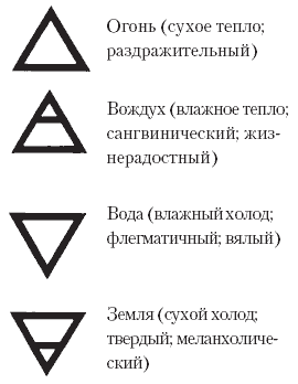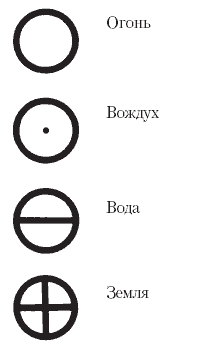 Символические обозначения четырех стихий.