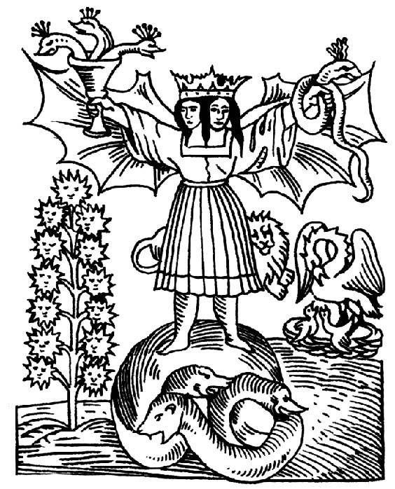 Сера изображается бескрылой змеей, ртуть – крылатой. Если алхимику удавалось соединить оба принципа, то он получал первоматерию.