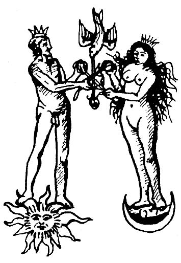 Два: Солнце и Луна (древняя алхимическая миниатюра)