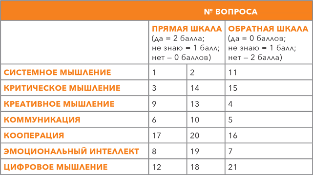 СХЕМА ПОДСЧЕТА ТАКАЯ:● За вопросы, которые оцениваются по ПРЯМОЙ ШКАЛЕ, за каждое «да» поставь 2 балла, за каждое «иногда» – 1 балл, за «нет» – 0 баллов.