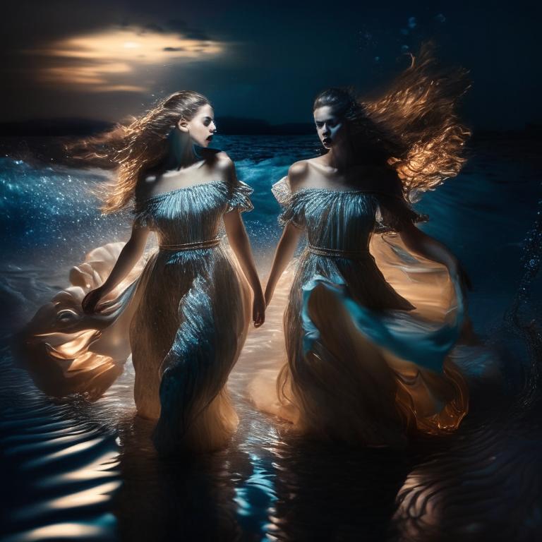 «Вечером, когда на поверхность море опустилась ночь, в небе зажглись звезды и взошла полная луна, далеко-далеко от берега, вдали от судоходных путей, можно было наблюдать странную картину – морские существа, взявшись за руки, водили хороводы, выпрыгивали из воды, поблескивая в лунном свете хвостами, а над водой неслась песня русалок – так здесь провожали умерших, также справляли свадьбы».