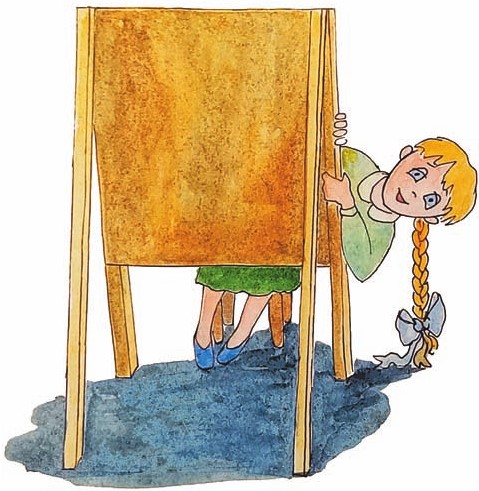 Девочка свешивалась из-за своего мольберта так, что её золотистая коса мела по полу.