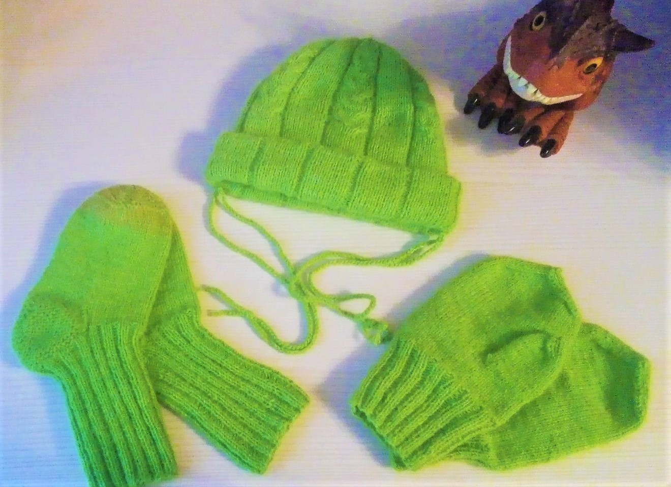 Вы можете выбрать любую теплую пряжу, оттенок, который нравится вашему ребенку. Мой сын любитель зеленого. Поэтому мы выбрали для комплекта из пряжи «Пух норки» оттенок зеленое яблоко.