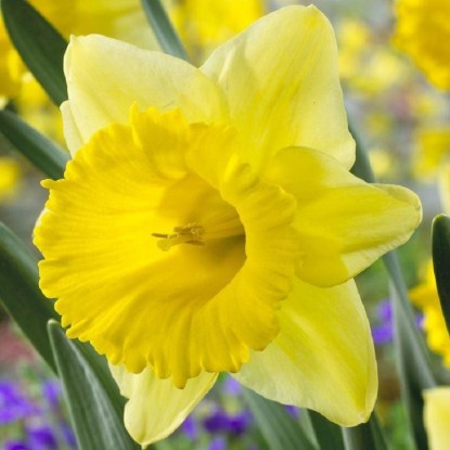 Нарцисс Дач Мастер любим садоводами всего мира. За свою способность органично вписываться в существующий дизайн сада. Уже в апреле Дач Мастер приступает к своим декораторским обязанностям, выбрасывая крупные цветы интенсивной желтой расцветки. И овальные лепестки, и корона имеют идентичный окрас, вот только последняя выделяется за счет своих сильно гофрированных краев.