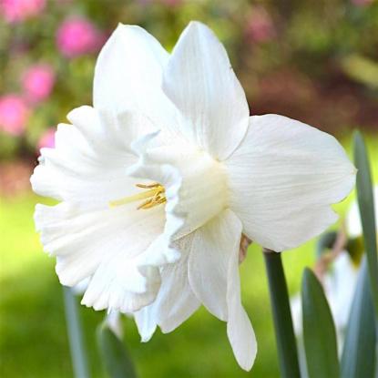 Эти нарциссы очень напоминают орхидею. Их трубка разделена и прилегает к околодольным лепесткам. Цветок на стебле один.