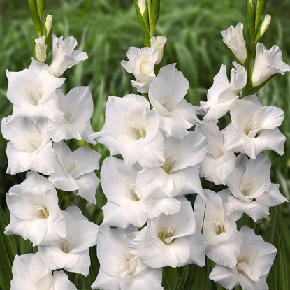 Гладиолус Сновдон – образец того, каким именно должен быть белый цвет в случае с садовыми растениями и их цветением. Лепестки его бутонов имеют безукоризненную белоснежную окраску, которой вполне могут позавидовать первоцветы.