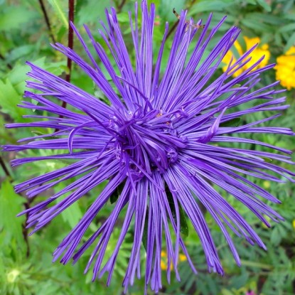 Астра Мария Баллард понравится ее шарообразными цветами диаметром не более пяти сантиметров. Они обладают глубокой и спокойной сине-лиловой расцветкой. Множественные лепестки надежно скрывают за собой сердцевину, своим цветом напоминающую яичный желток.