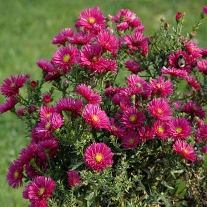 Астра Royal Ruby имеет яркую рубиново-малиновую окраску соцветий, контрастирующую с броской желто-коричневой сердцевиной. Отцветая, бутон сразу сдает свое место новому цветку, не допуская проплешин в королевском ковровом покрытии.