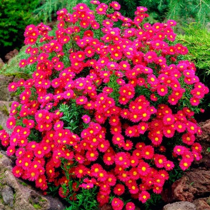 Астра Роял Руби – мечта ландшафтных дизайнеров и помощник рядовых цветоводов. Без лишних церемоний и условностей она образует плотный и яркий ковер, состоящий из мелких, но очень амбициозных, цветков.