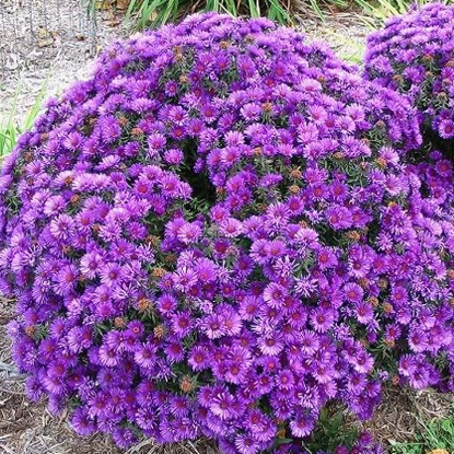 Сорт Перпл Дом имеет фиолетово-сиреневую окраску. Бутоны распускаются осенью, и в сентябре вы сможете наслаждаться невероятно богатым цветением астры: изящный куст идеально круглой формы будет хорошо смотреться на газоне, в альпинариях.