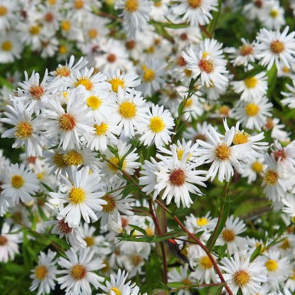 К моменту цветения каждый, даже самый тонкий побег, несет на себе плотно набитый маленький бутончик, готовый раскрыться в белоснежную звезду. В стадии полноценного цветения куст полностью покрыт многочисленными цветками с тонкими нежными лепестками. Последние лежат в горизонтальной плоскости, полностью раскрывая желто-красную сердцевину астры.