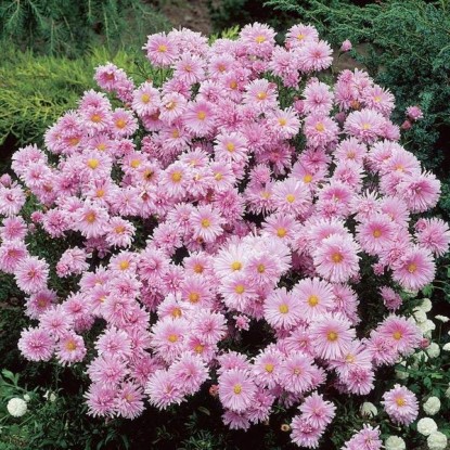 Новобельгийские астры любимы садоводами за декоративность и неприхотливость. Сорт Феллоушип – это нежно-розовые махровые цветы с жёлтой серединкой. При минимуме усилий в конце августа на участке зацветёт большой яркий куст астр!