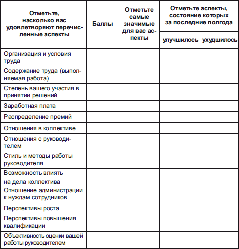 Гадание на кофейной гуще и другие способы исследования потребностей подчиненныхКарта оценки удовлетворенности работой