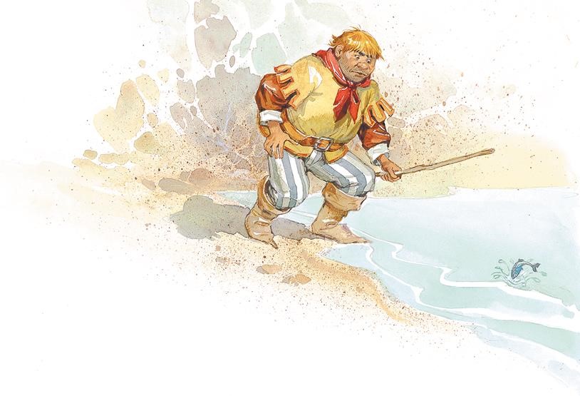 Он схватил первую попавшуюся ветку, и она тотчас превратилась в удочку.