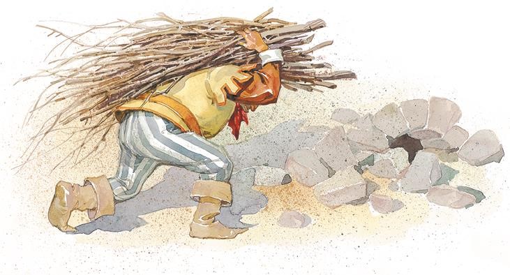 Но мальчик тут же превратился в печь, а сестра – в булочку. Великан разозлился ещё больше. Он выдернул несколько рыжих волос со своей головы и превратил их в охапку хвороста.