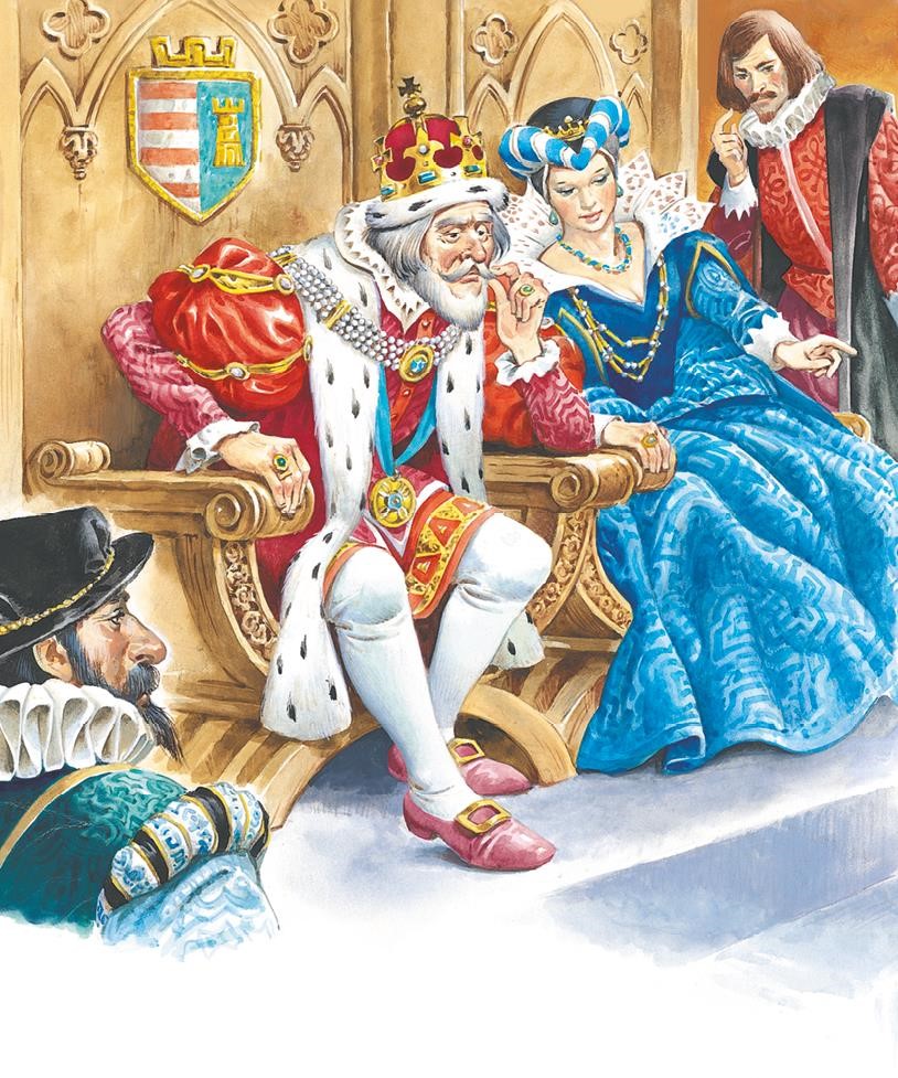 Услышав знакомое имя, король тут же приказал спасти беднягу. А кот времени не терял и шепнул королю, что одежду его хозяина украли злые воры.