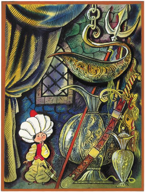 Вся комната была полна старых платьев и диковинной старинной посуды. Муку особенно понравился один кувшин – хрустальный, с золотым рисунком. Он взял его в руки и начал рассматривать, и вдруг крышка кувшина – Мук и не заметил, что кувшин был с крышкой, – упала на пол и разбилась.