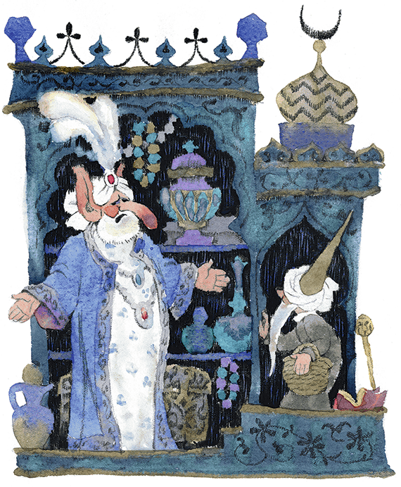 Теперь настал час Маленького Мука. Он изменил внешность, надел длинные одежды и явился, требуя, чтобы его представили королю как доктора, который лечит носы и уши.