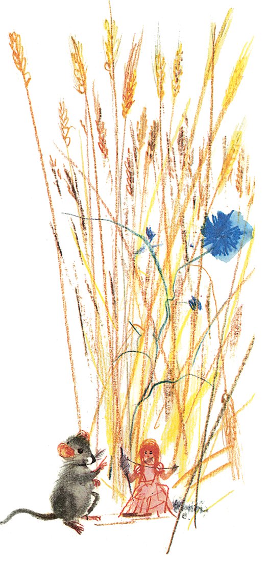 Девочке было очень грустно. Ей совсем не позволяли выходить на солнышко, а хлебное поле так всё заросло высокими толстыми колосьями, что стало для бедной крошки дремучим лесом.