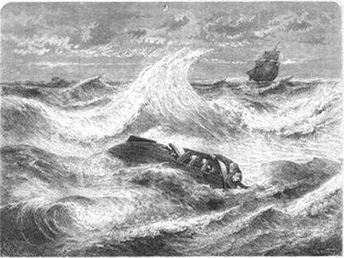 Наконец наступил день. Но с первым проблеском утренней зари ветер подхватил лодку, в которой мы сидели, и опрокинул ее. Никого из своих моряков я уж не видал. Падение оглушило меня, а когда я очнулся, то находился в объятиях своего старого, верного слуги, который спасся на опрокинутую лодку и вытащил за собою меня.