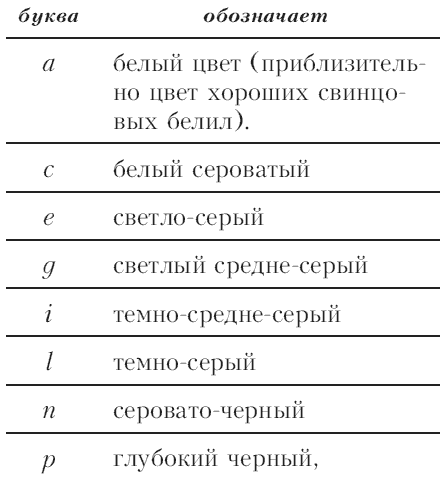 Это означает, что при выборе того или иного серого цвета берется уже не какой угодно произвольно установленный оттенок серого, а та из ступеней а с е g… которая в данном случае соответствует цели.