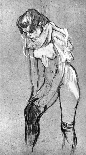Женщина, подтягивающая чулок. Художник Анри Тулуз-Лотрек