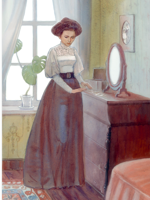 Вдруг она отскочила от окна и остановилась у зеркала. Её глаза зажглись ярким светом, но лицо потеряло секунд на двадцать свой чудесный румянец. Она вынула шпильки из волос и распустила их во всю длину.