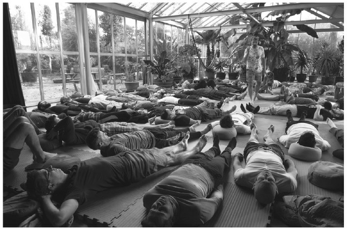 Групповое дыхательное упражнение в Центре Метода Вима Хофа в деревне Стро (Нидерланды)