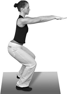 Только слишком не усердствуйте! Выполняйте упражнения в меру своих гимнастических способностей, не можете сделать наклоны в 90° по отношению к ногам – и не надо, не расстраивайтесь, вы уже молодчина, раз стойко переносите тяготы спортивной жизни. А теперь поупражняем мышцы ног. Поставьте ножки врозь и приседайте, при этом поднимая вытянутые руки параллельно полу. 10 приседаний – вполне достойный уровень для начинающей молодой спортсменки-мамы. И в завершение своего первого тренировочного дня походите попеременно то на цыпочках, то на пятках. Вы справились? Значит, вы на пути к успеху!