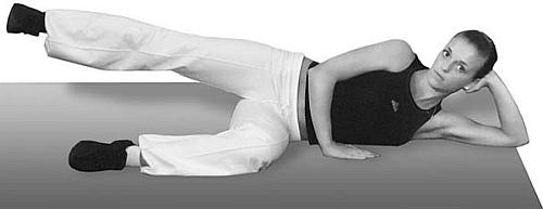 Теперь сделаем упражнение на выносливость. Легли на правый бочок, головку положили на правую руку которая локотком уперлась в пол. Поднимаем левую ножку в три этапа: чуть оторвали ножку от пола, зафиксировали положение на пару секунд, подняли повыше и подержали ее в таком положении и, наконец, подняли ножку под углом 60°. А теперь таким же образом в три этапа опускаем ножку. Эту же схему упражнения выполняем, лежа на левом боку. Сделали по 10 приемов с каждой стороны, отдохнули. Полежали? Восстановили дыхание? Тогда на цыпочки – и пошли-пошли. Потом на пяточки – и шагом марш. Убедительно! Продолжайте в том же духе!